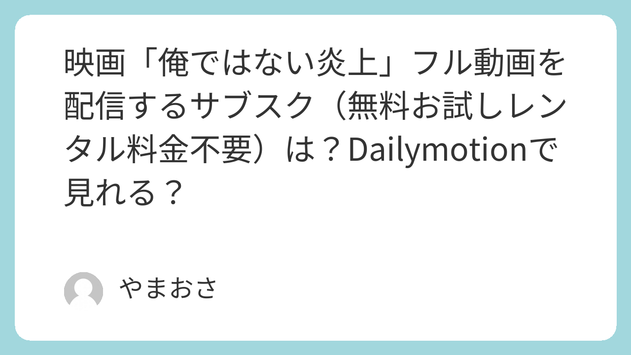 このページでは、映画「俺ではない炎上」フル動画を無料お試しレンタル料金不要で視聴できる動画配信サブスクを紹介します。