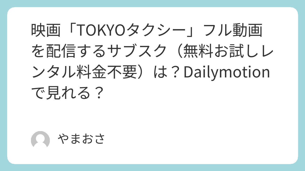 このページでは映画「TOKYOタクシー」フル動画を無料お試しレンタル料金不要で視聴できる動画配信サブスクを紹介します。